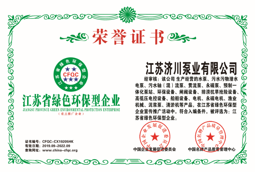 Green Environmental Enterprise Honor Certificate