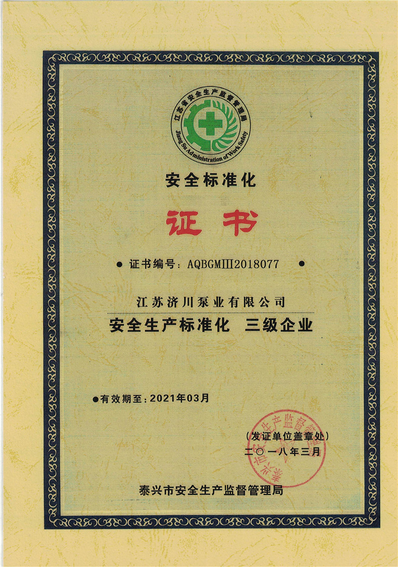 Safety Standardization Certificate