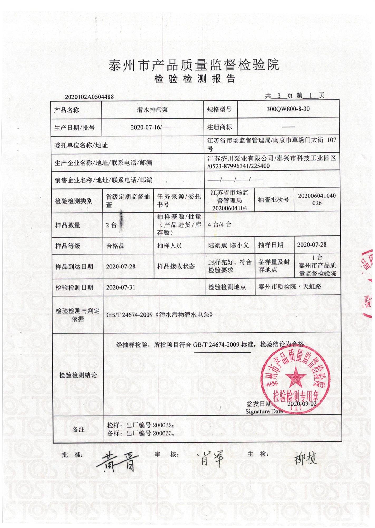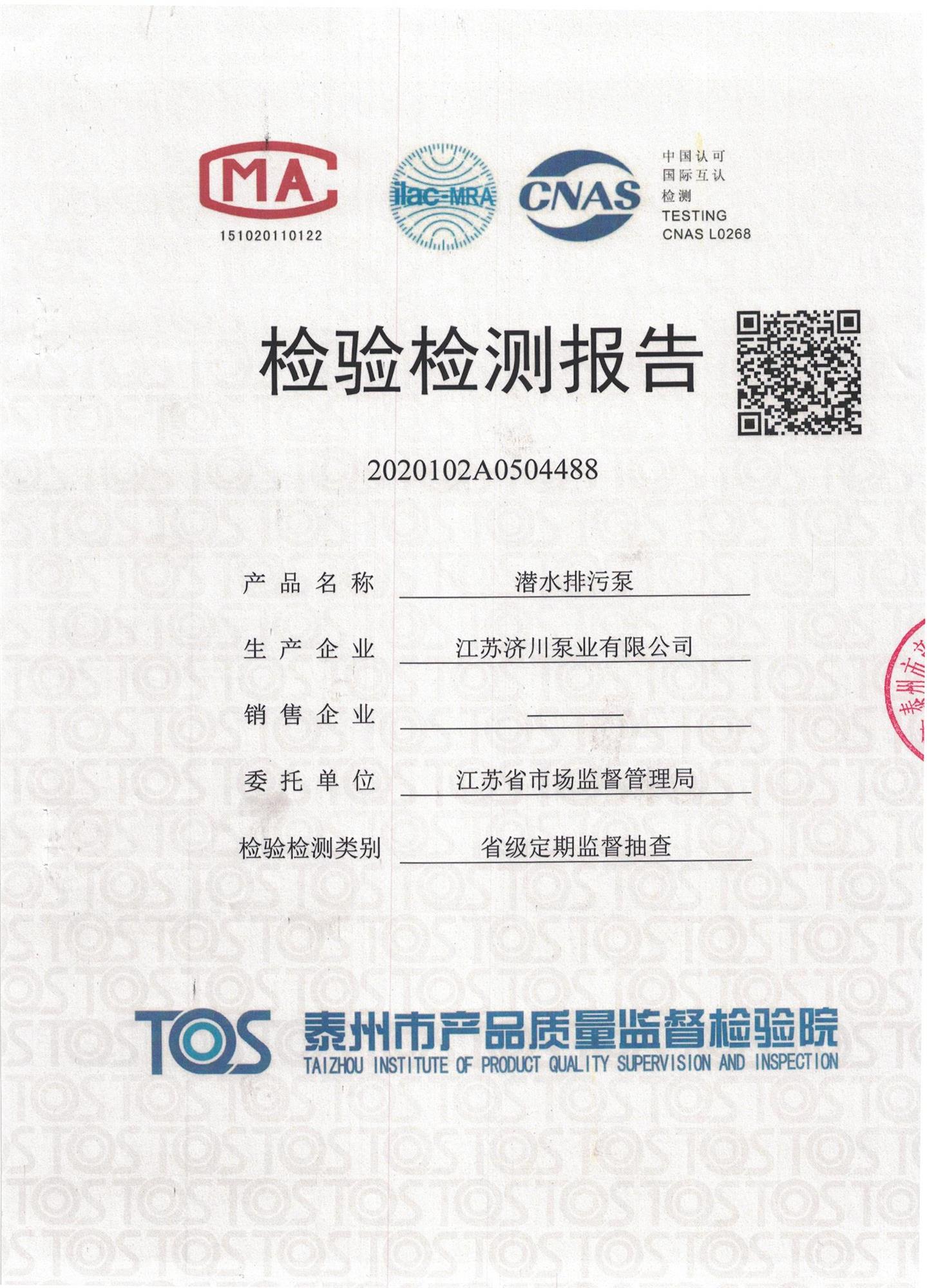 30kw Submersible Sewage PUMPS Test Report